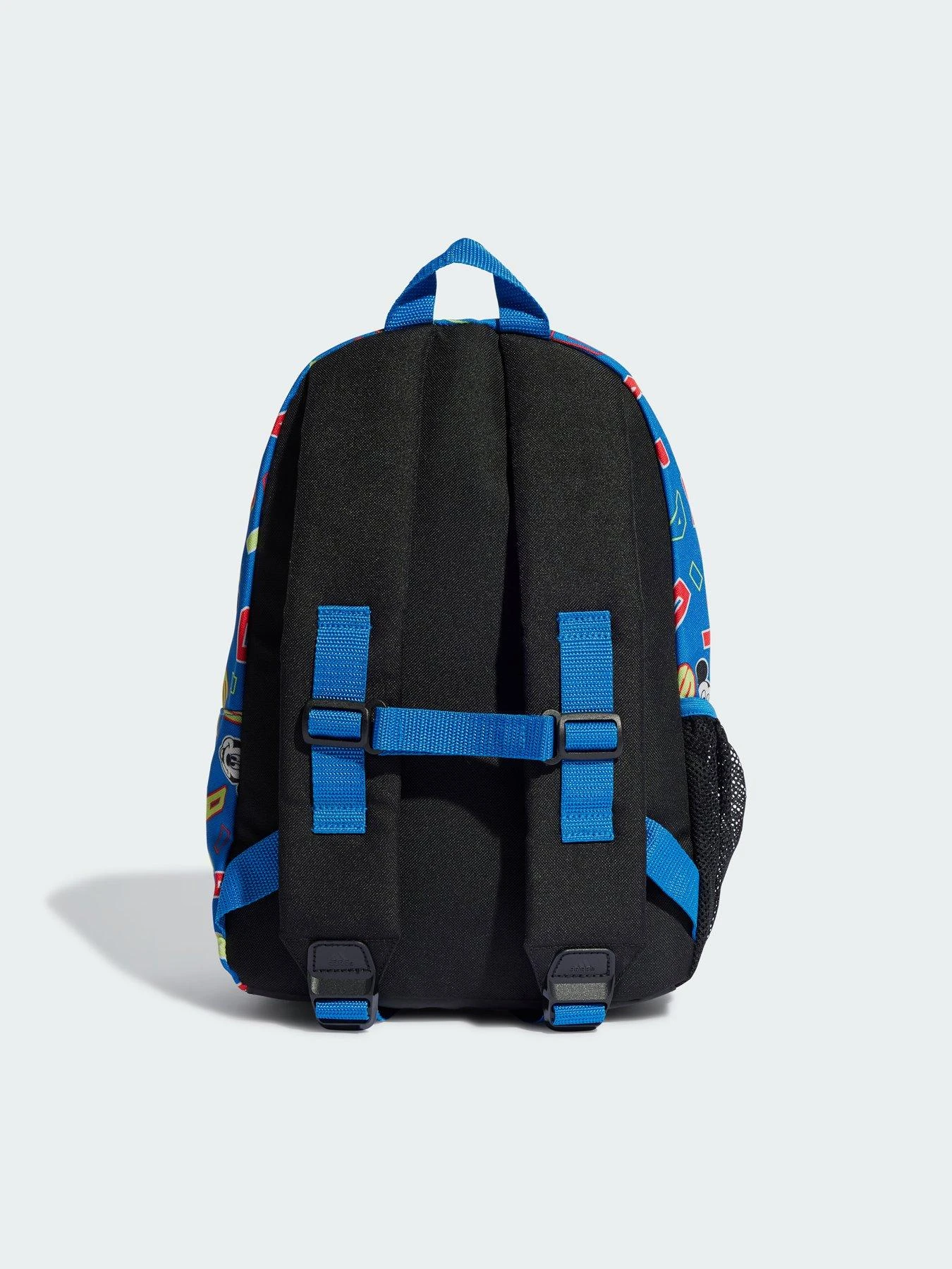 It’s always more fun when you bring friends along. Here, Disney’s Mickey Mouse joins your next adventure in this juniors’ adidas x Disney backpack. It’s the perfect bag all your gear ?????? side pockets, a large main compartment and an adjustable chest strap for when things really get moving.Made with a series of recycled materials, and at least 40% recycled content, this product represents just one of adidas’ solutions to help end plastic waste.