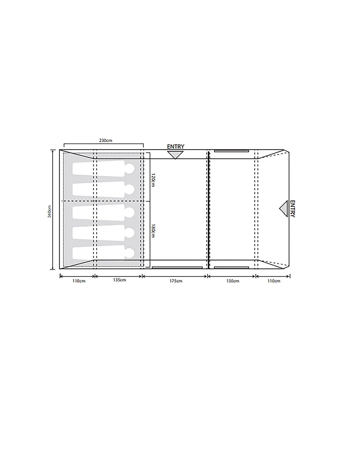 - 230cm deep, darkened Twilight micro polyester 5 person bedrooms with a 2/3 zip in divider