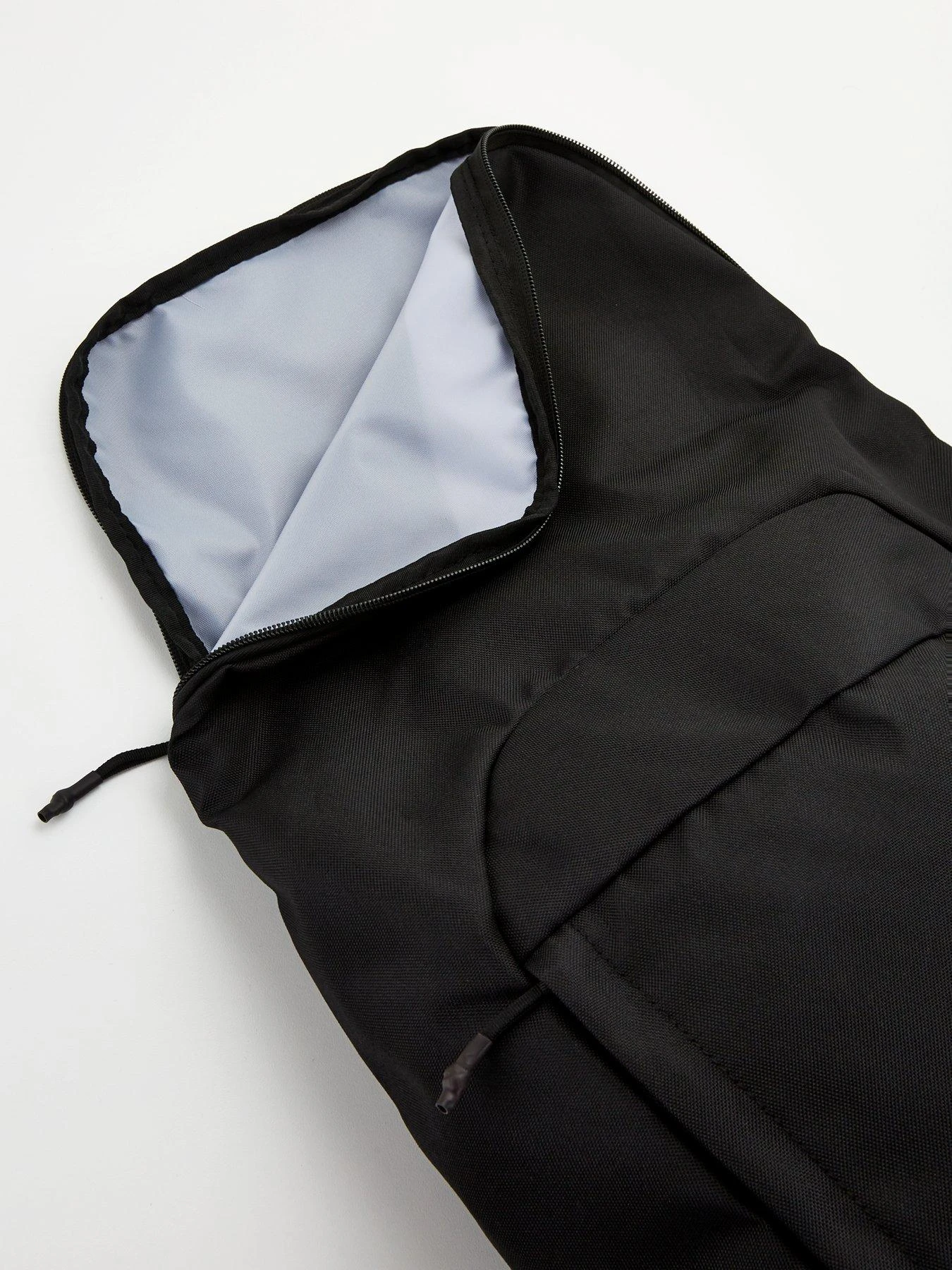 - This sleek backpack carries everything you need from work to walks with its spacious main compartment. Featuring padded back straps and multiple zip pockets for secure organisation, its versatile black shade offers plenty of wearability too.