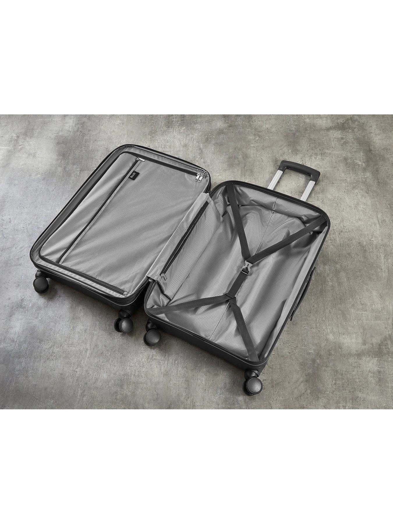 Rock Prime is made from ultra-strong polypropylene. It’s super tough and impact resistant and packed with practical features. Expander zips can be opened to increase the volume of the case, ideal for last-minute extras or holiday shopping. Eight smooth rolling wheels and a telescopic handle help them glide effortlessly along platforms and concourses. For your complete peace of mind, Prime cases are fitted with an integrated Travel Sentry-approved TSA combination lock. Travel Sentry allows your suitcase to be legally opened by aviation security agencies without damaging your case. Design excellence continues inside, where you’ll find a luxurious soft-touch lining, useful zipped pocket, and mesh divider section and elasticated straps to help prevent contents shifting. Leave your packing worries behind with this expandable hardshell with larger sizing allowing extra capacity for all those last minute additions, without having to purchase a larger size or another case.