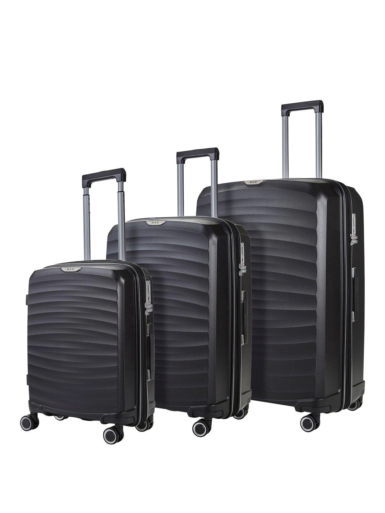 Rock Luggage Sunwave 8-Wheel Suitcases – 3 piece Set – Black