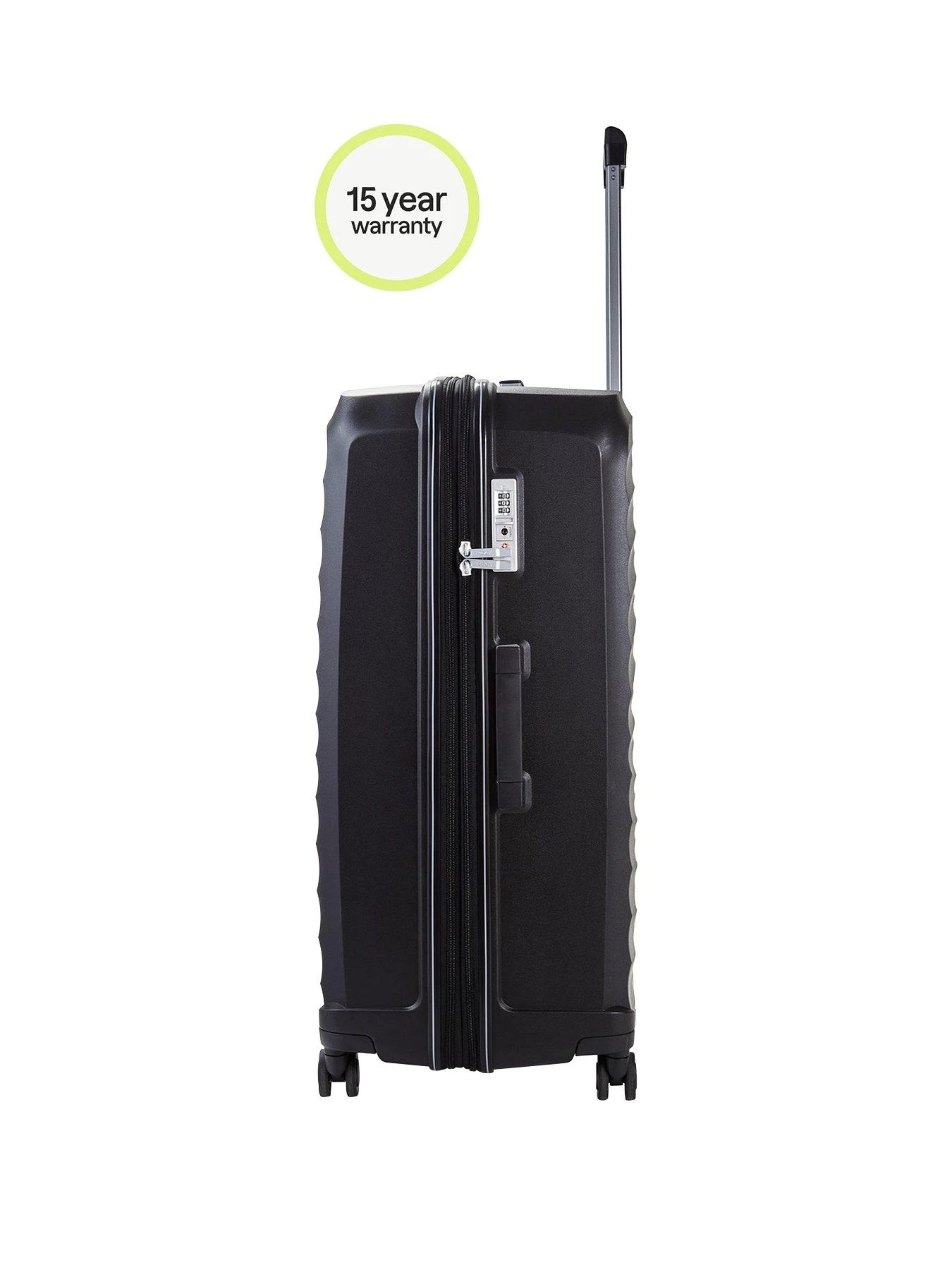 A superhero suitcase! Expandable hardshell, 8-wheel spinner luggage. The ultra tough polypropylene shell ensures this Rock is super strong.