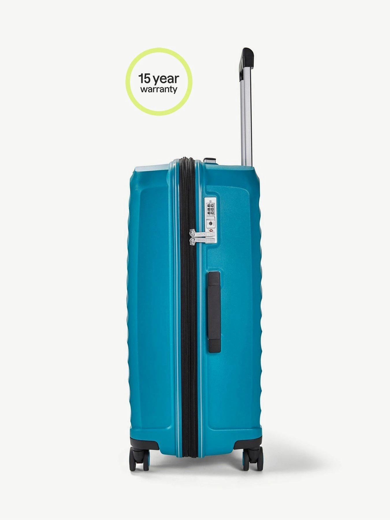A superhero suitcase! Expandable hardshell, 8-wheel spinner luggage. The ultra tough polypropylene shell ensures this Rock is super strong.