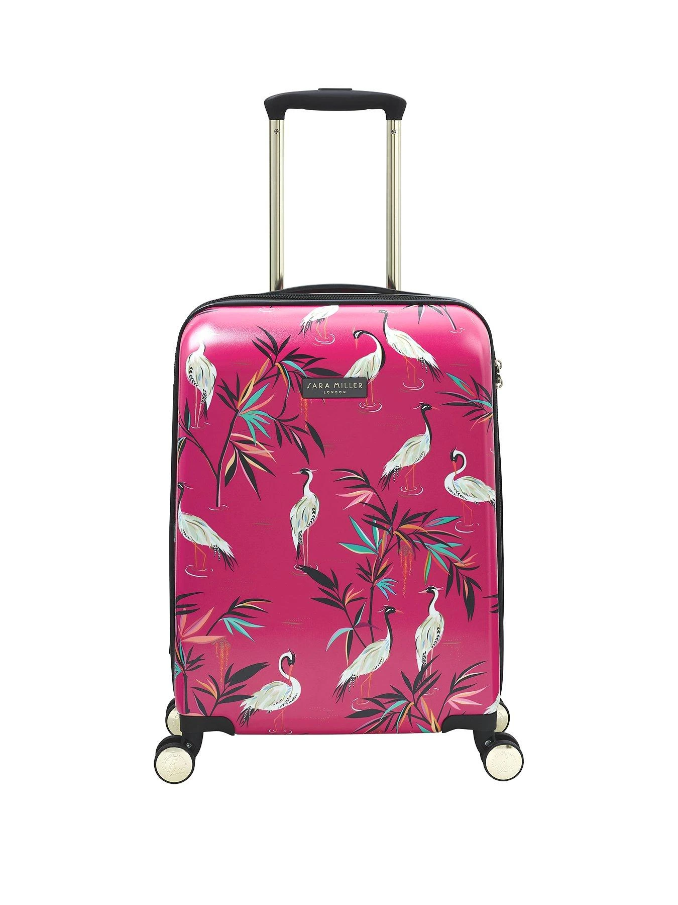 Sara Miller Small Pink Heron 4 Wheel Trolley Suitcase
