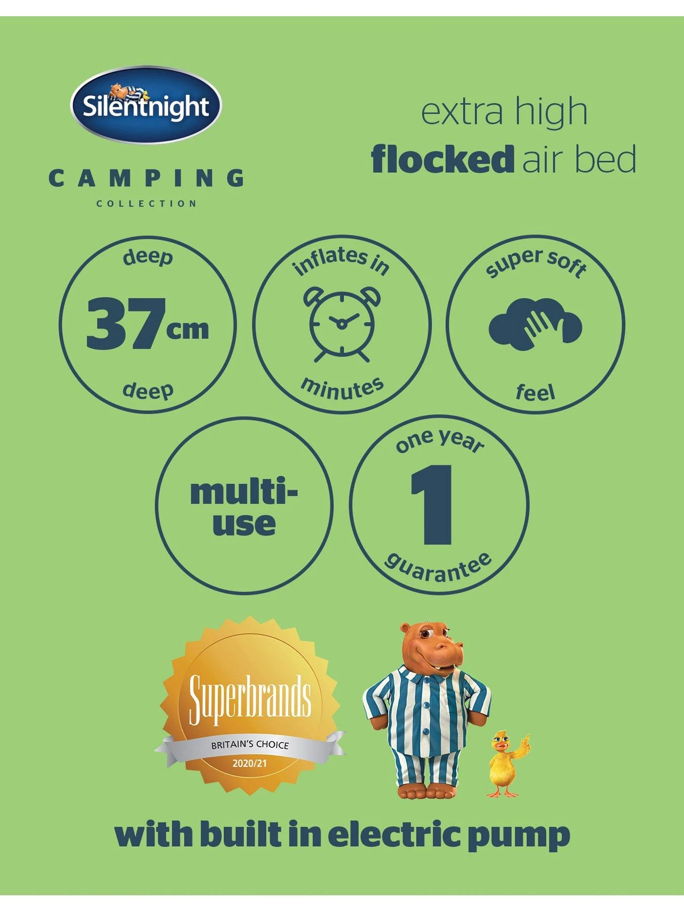Enjoy the comfort of home in the great outdoors from Silentnight, the UK’s most trusted sleep brand. The Silentnight Extra High Flocked Airbed with Built-in Electric Pump is from the UK’s most trusted bed brand so you can bring the comfort of home to the great outdoors.