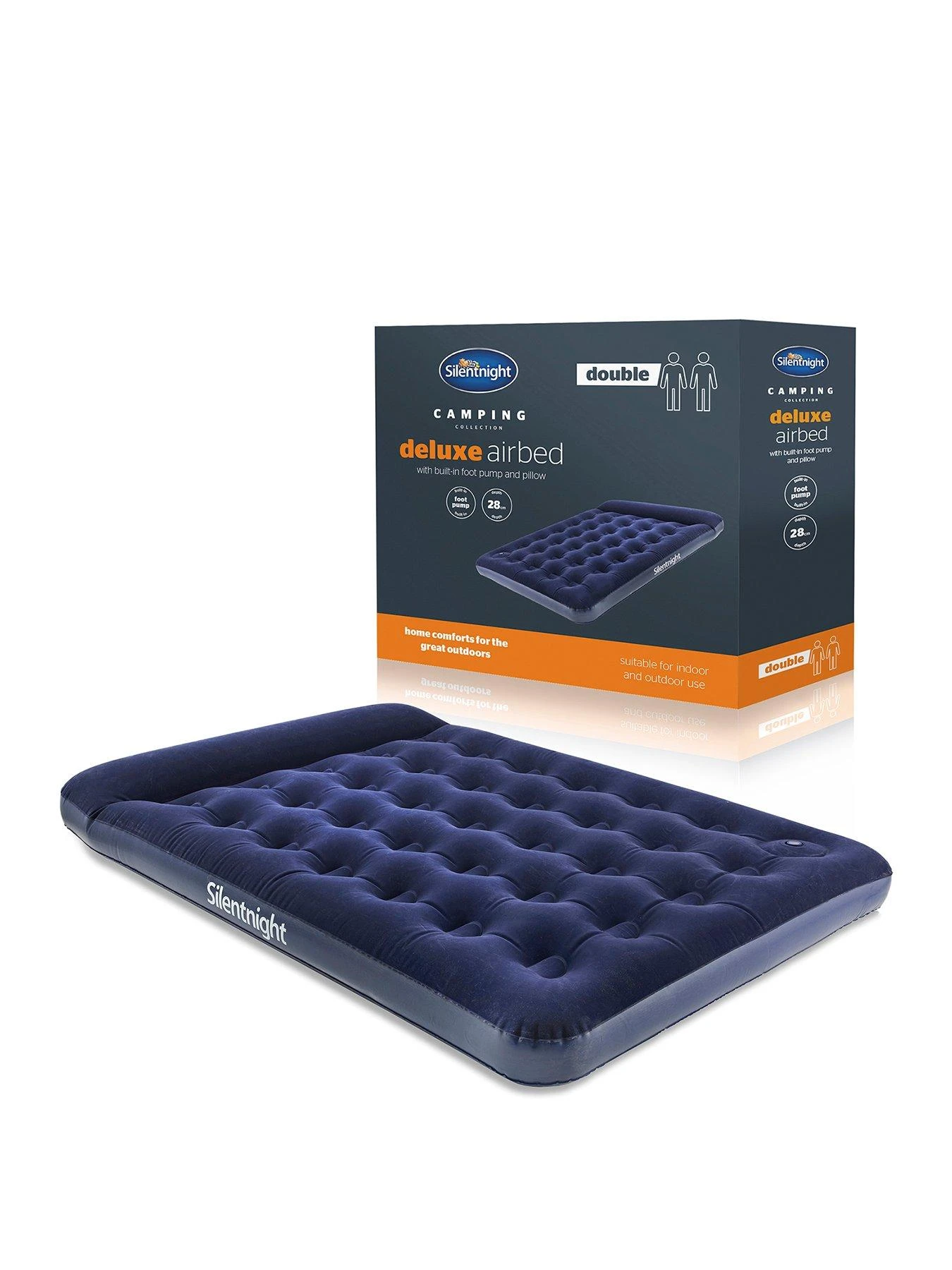 SILENTNIGHT CAMPING COLLECTION FLOCK AIRBED – FOOTPUMP – BLUE – DOUBLE