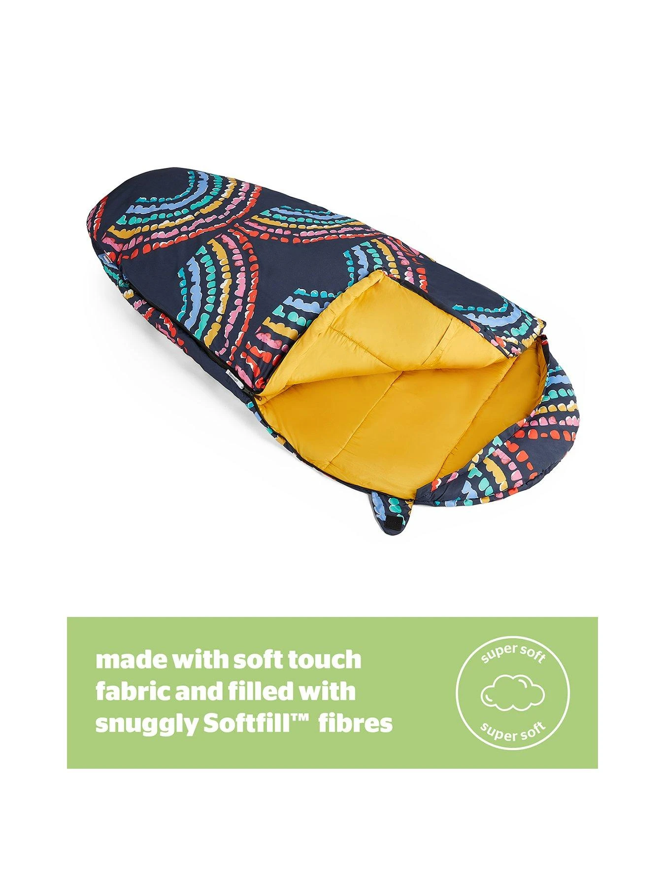 Our 3 seasons kids sleeping bag is ideal for spring and summer trips. Made with soft touch fabric and filled with snuggly Softfill fibres for ultimate comfort. Our fun, colourful prints will only add to the adventure – perfect for nights under the stars or sleepovers at a friend’s house. The pod shape also ensures there is enough wriggle room for a cosy night’s sleep.