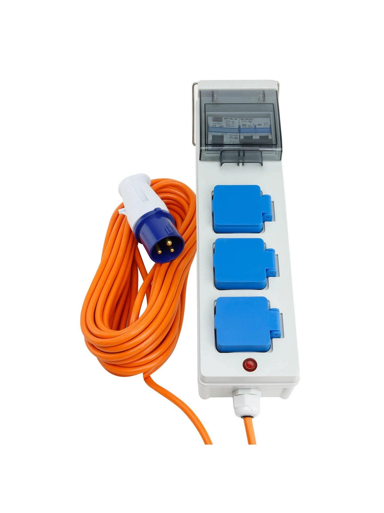 Designed to work in both caravan and motorhome parks, this mobile mains unit connects to the hook up point so you can power upto three UK 3-pinned plug socket appliances.