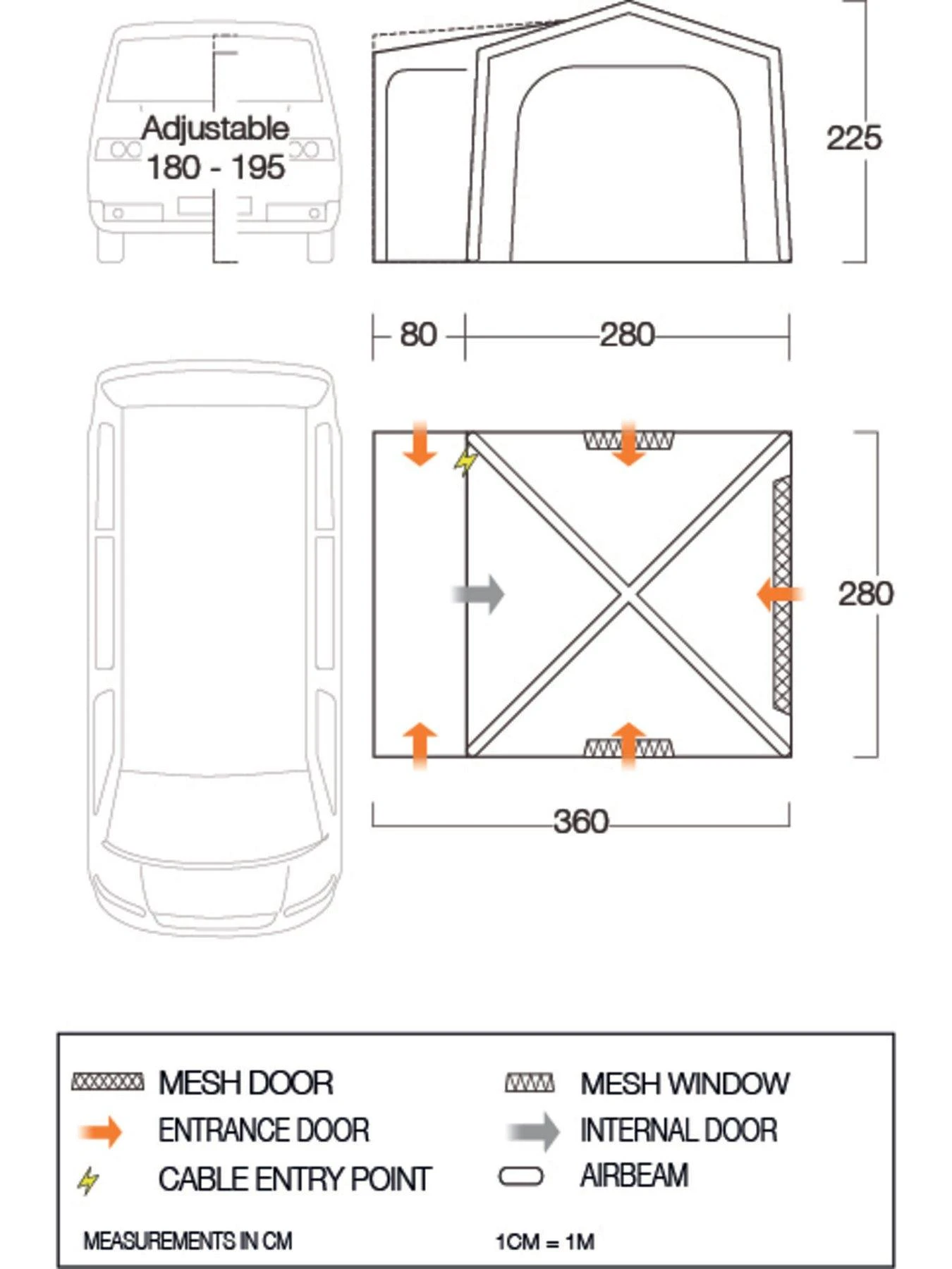 New for 2021, the Agora Air VW is superbly versatile, wherever your adventures take you. Designed for campervans and conversions, the Agora’s sleek colourways and sports design are sure to compliment your vehicle perfectly. With Vango’s AirBeam® technology, this drive away awning is inflated in minutes and deflated just as fast for when it’s time to get on the road. With flat entry roll away doors on all sides, the Agora is the perfect spot for socialising on the campsite or for food preparation. It’s just as functional as an added storage space for bikes and surfboards or as a guest sleeping area with the optional clip-in bedroom. Integrated mesh windows allow for enhanced ventilation, whilst keeping the bugs out. Created with Vango’s featherlight Sentinel Sport Fabric – one of the lightest fabrics in our drive away collection – for a compact pack size, so you’ll have room in your camper for the things that matter most. The unique and durable embossed hex fabric is carried across the fitted curtains and optional Carpet for a stylish, seamless look without compromising on practicality. Enjoy every adventure with the Agora Air VW.