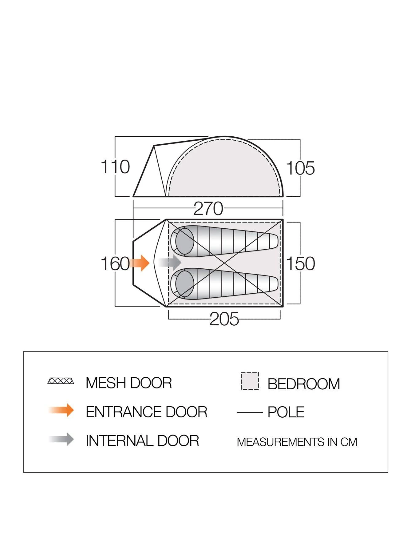 The Alpha 250 2-man tent is an easy-to-pitch tent with linked-in groundsheet that features a stylish, yet functional gothic arch porch for storing kit. The PowerFlex Poles offer a stable structure with generous headroom, whilst the highly waterproof yet lightweight Sentinel Eco flysheet (3,000mm HH) makes this the ideal tent for outdoor adventurers, cyclists or youth groups. Protex Zero Flysheet – Reducing waste by utilising offcut surplus trim fabric and 70D polyester made from single-use plastics.. Protex Zero is highly waterproof with a 3000mm HH, providing durability and reliability. Vango PowerFlex Fibreglass Poles – Create strong, light and reliable structures. Fire Retardant Fabrics – Exceeds European EN5912 safety standard. Nightfall Bedrooms – Helps reduce early morning light so your sleeping pattern doesn’t need to be dictated by the sunrise. Gothic Arch Pole Structure – Increases stability and assists water run-off from the flysheet. Linked-In Groundsheet – Easy to clean groundsheet that can be attached or detached from the living area. Simply roll under the bedroom area when not required. Breathable Polyester Inner – Allows condensation to pass through, for a comfortable night’s sleep. High Visibility Guylines – Easy to see in low light conditions. Fast Pack Tent Bag – Oversized opening for easy packing and compression straps to control pack size.
