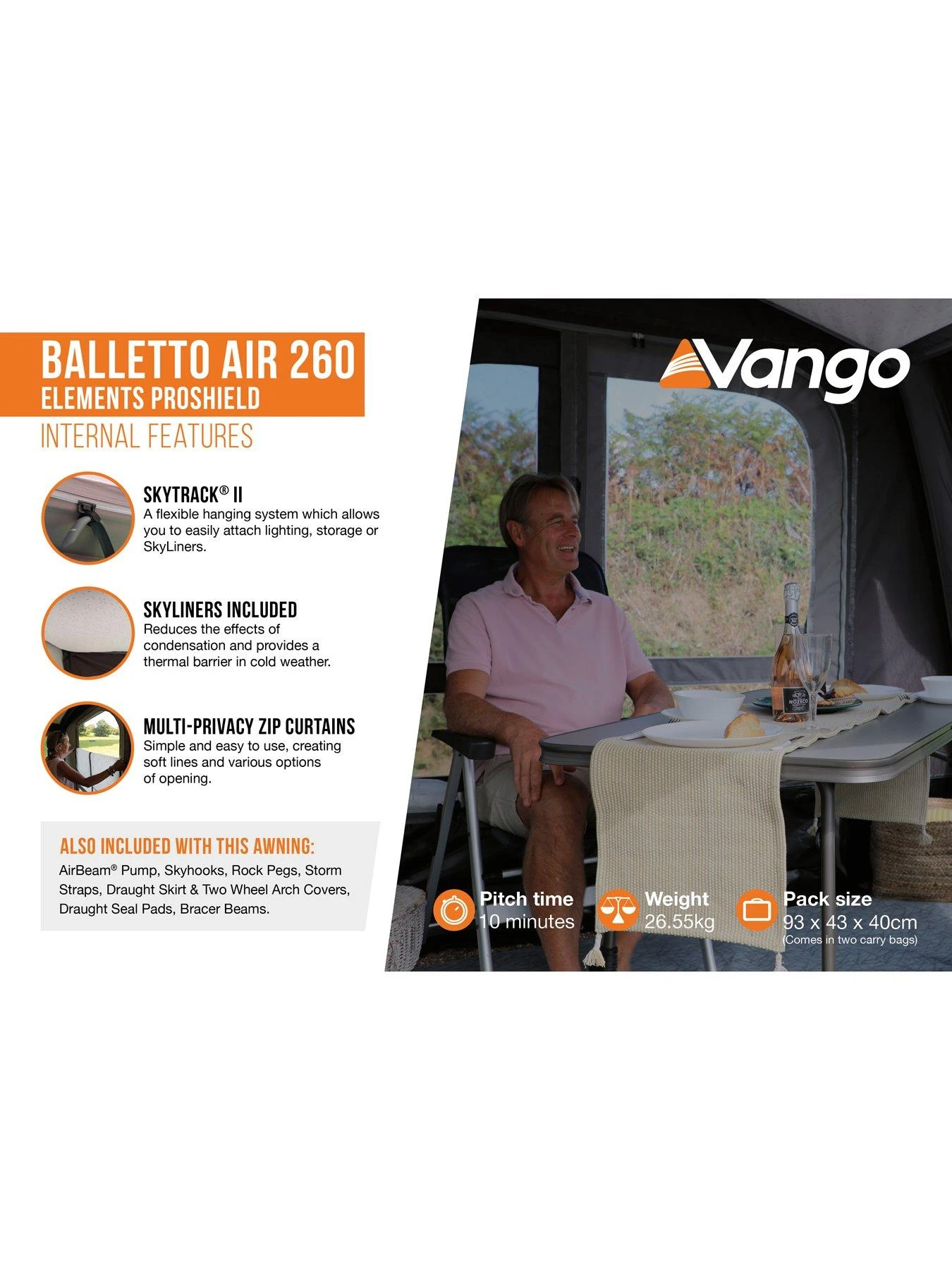 The Balletto Air 260 Elements ProShield Caravan Awning features Vango’s revolutionary (and super quick) AirBeam technology.
