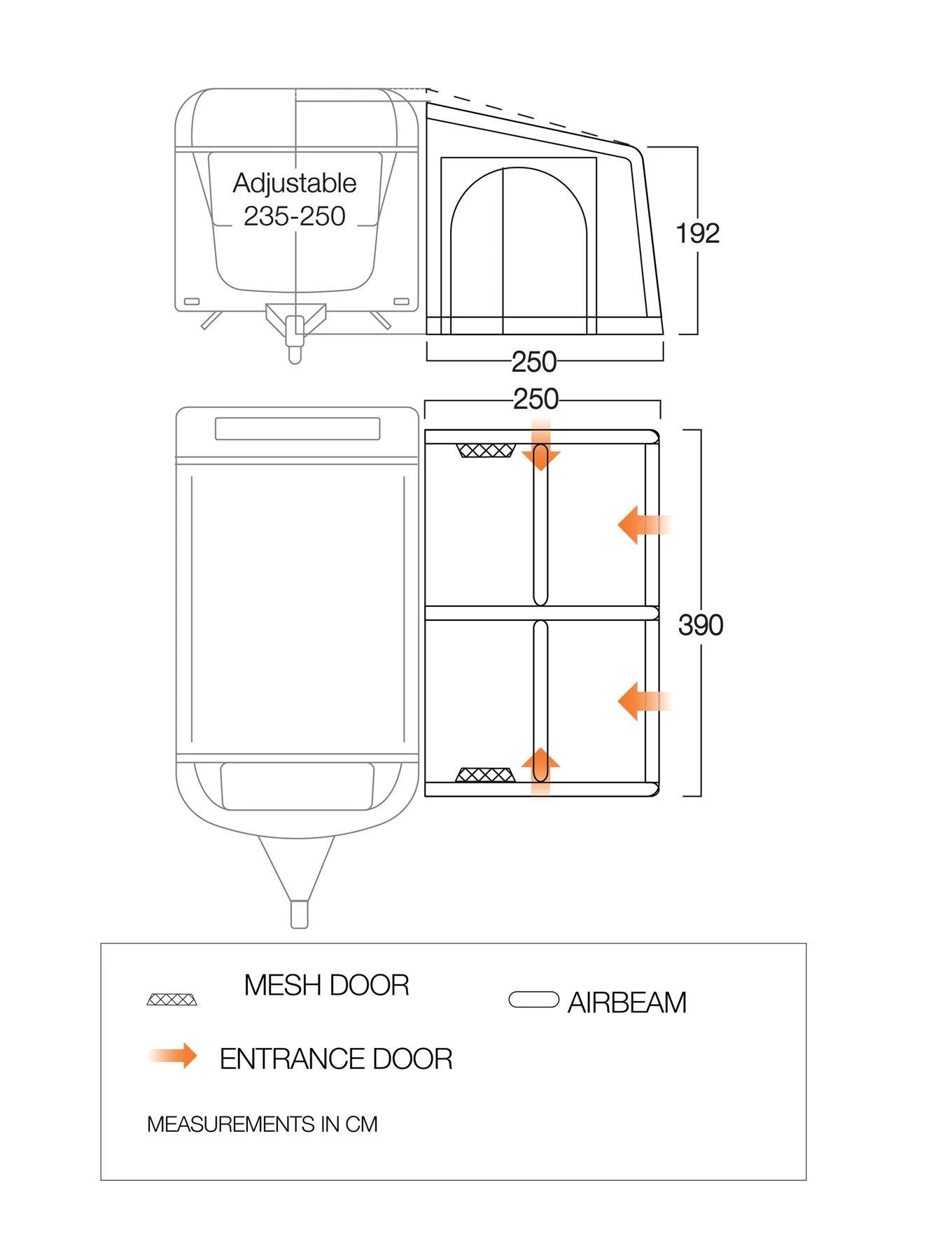 Vango’s Patented Draught Seal System, with draught skirt and 2 wheel arch covers, creates a tight seal between the awning and your caravan, ensuring no draughts come into your awning.
