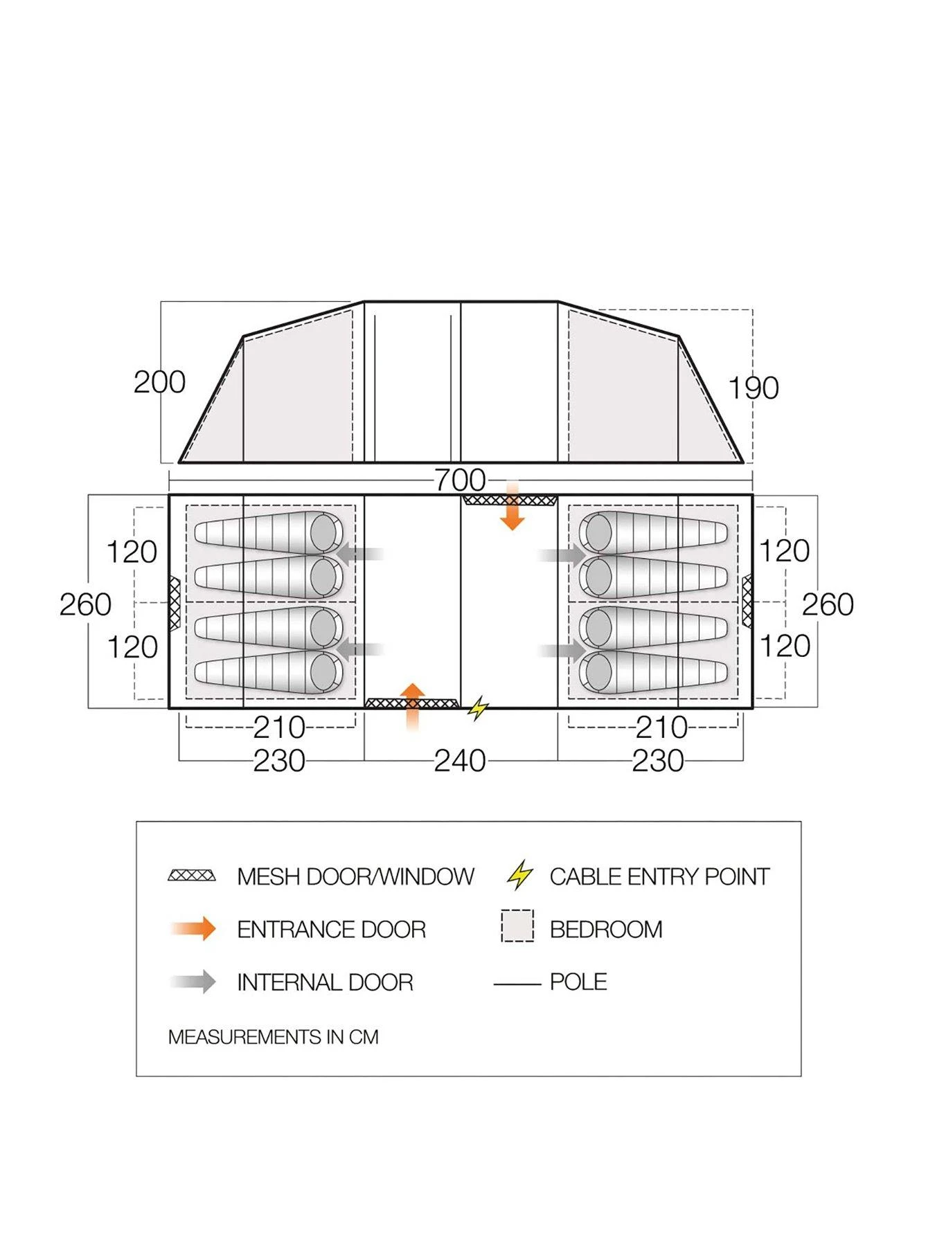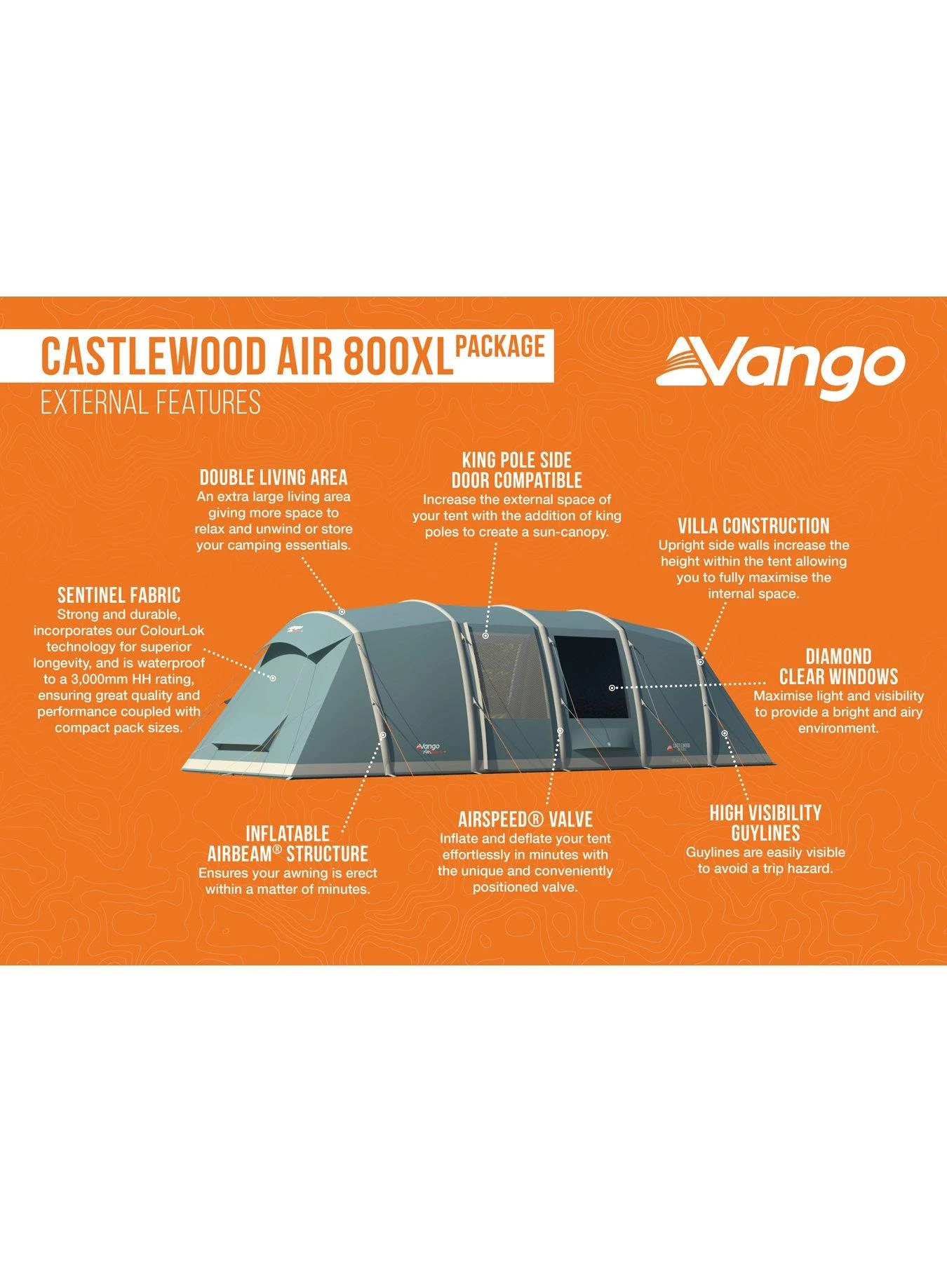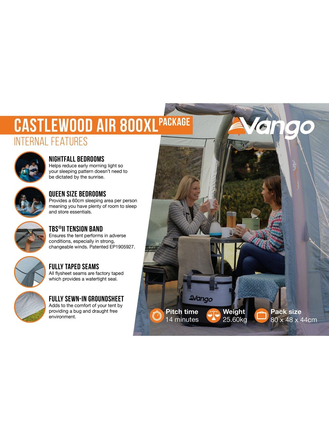 The Vango Castlewood Air 800XL AirBeam tent is designed for campers who prefer more private sleeping areas, ideal for 2 families or couples to have separate sleeping areas.