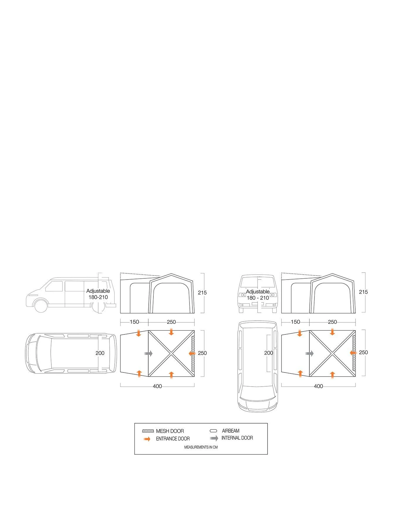 Sentinel Active fabric is strong and fully waterproof, ensuring great performance coupled with a compact pack size. Inflatable AirBeam technology ensures your awning is erect within a matter of minutes (supplied with AirBeam pump). Pre-angled Beams also achieve greater internal space than with a standard curve, while providing effective bracing against winds.